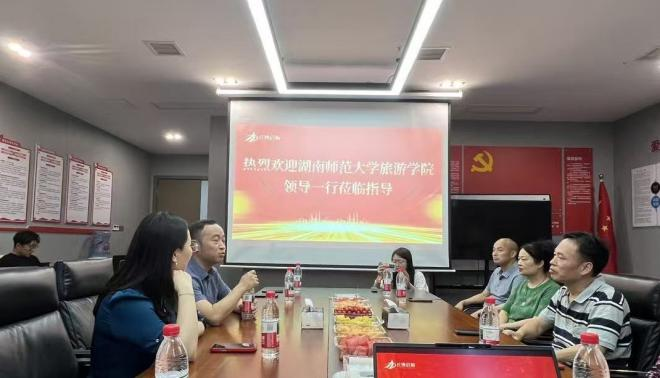 湖南鸿博启航教育科技有限公司总经理刘丁杰、湖南港中旅游集团总经理梁丹、湖南启星体艺文化发展有限责任公司副总经理李平、湖南中航国际旅行社有限公司副总经理付勇等学院校友热情接待我院一行。