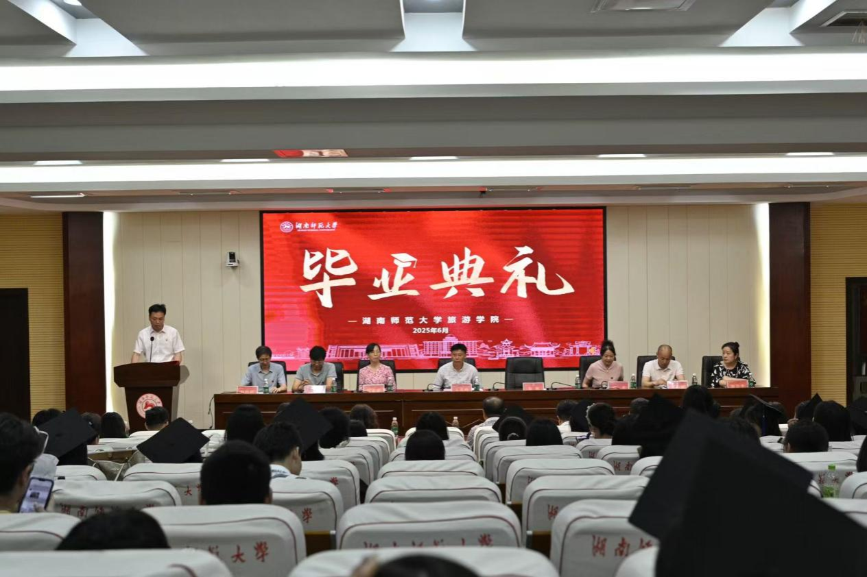 院长王兆峰发表毕业致辞,他代表学院向全体毕业生表示热烈祝贺,向所有关心、支持和帮助同学们成长成才的老师、家长和社会各界人士致以衷心感谢,他对毕业生提出三点期望:一是胸怀家国,将个人理想融入国家“旅游强国”战略;二是志存高远,以“为天地立心,为生民立命”的担当,与祖国同呼吸、与人民共命运;三是知行合一,在工作中成长,在生活中感悟,追求卓越人生。