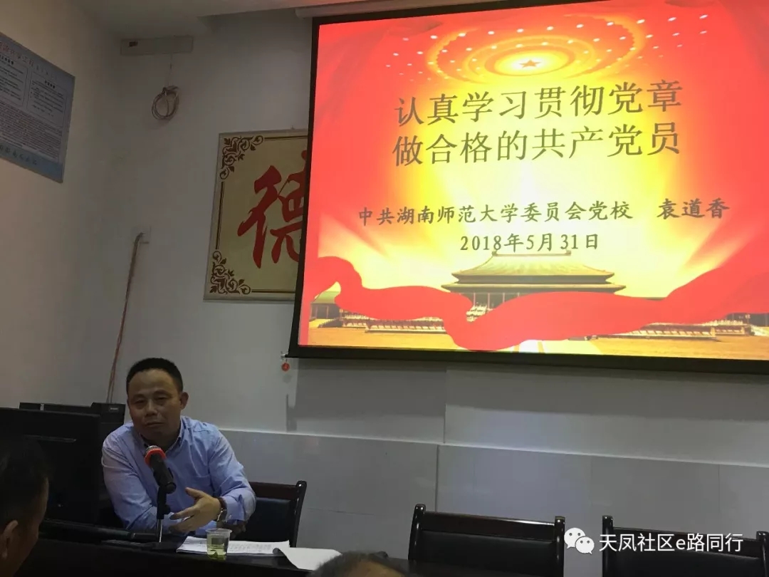 5月31日下午,在天凤社区服务中心党员活动中心,我院与天凤社区联合开展党员学习活动,邀请365(VIP)英国上市党校常务副校长袁道香主讲了“认真学习贯彻党章、做合格的共产党员”的专题党课。