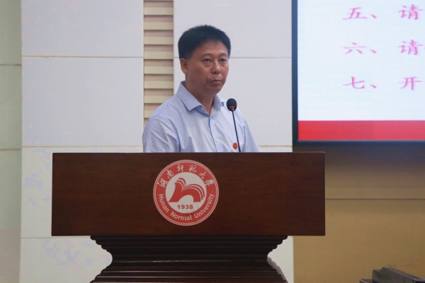 唐健雄作为教师代表发表讲话,他希望同学们在大学期间自主学习,勇于创新,培养对学习、对专业的学习兴趣和能力,同时提高自身文化素养,全面发展。