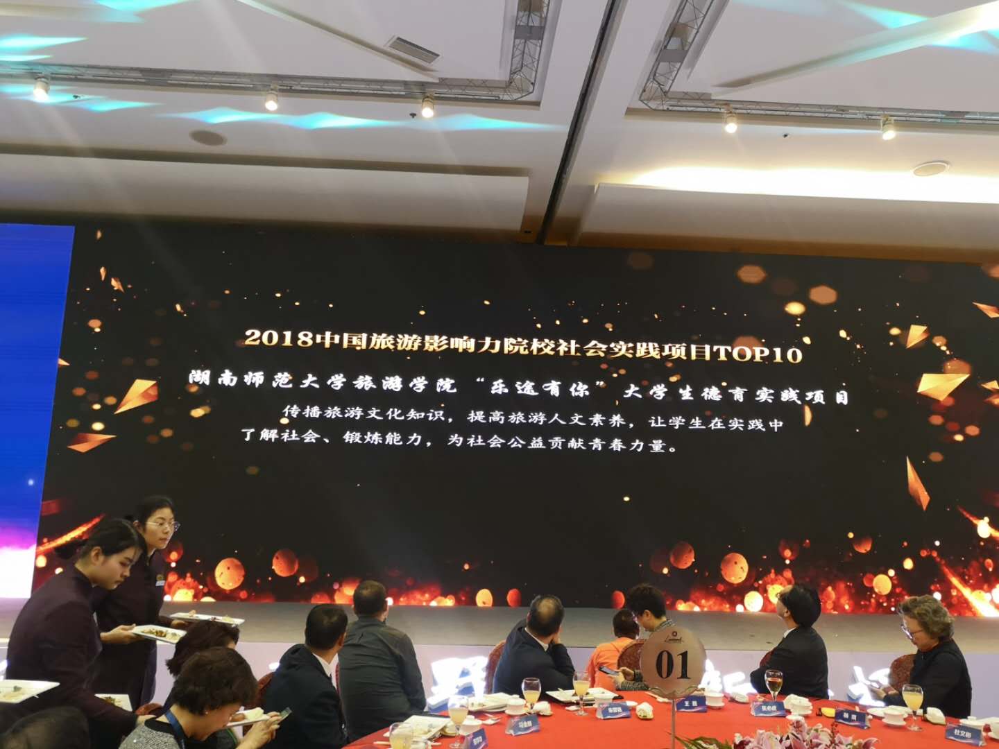 1月23日,2019中国旅游产业发展年会在北京举行,本次大会由文化和旅游部批准,中国报业协会指导、中国旅游报社主办。会上揭晓了2018年中国旅游产业影响力风云榜。我院入选2018中国旅游影响力院校社会实践项目TOP10,是湖南唯一入选的院校项目。