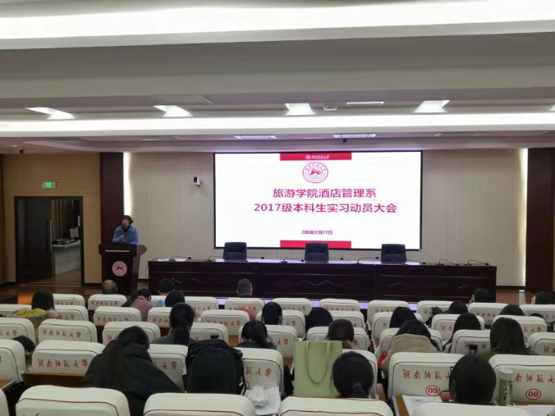 (通讯员 高宇宁 朱彤)12月27日下午,我院于中和楼234教室召开2017级酒店管理专业本科生实习动员大会。我院院长王兆峰、副院长贺小荣、副书记廖欢、酒店管理系主任唐健雄、各地区带队老师出席此次动员大会,大会由酒店管理系教师刘颖洁主持。