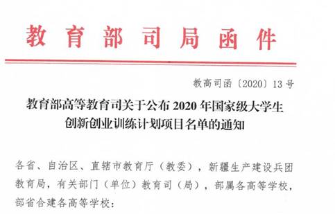 (通讯员 宁晓洲 朱彤)近日,根据《教育部高等教育司关于公布2020年国家级大学生创新创业训练计划立项项目名单的通知》(教高司函〔2020〕13号),我院大学生创新创业训练计划立项创历史最好成绩,荣获国家级立项4项、省级立项5项、校级立项2项,其中孟奕爽、龚曦、罗文斌、申慧敏等4位老师指导项目获得国家级立项。