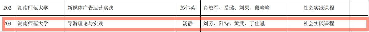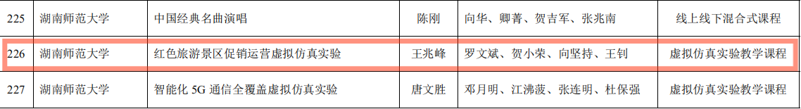 近日,省教育厅公布了2020年湖南省一流本科课程认定结果,我院4门课程全部被认定为省级一流本科课程。其中刘颖洁副教授“沟通的艺术”被认定为精品在线开放一流课程、汤静副教授“导游理论与实践” 被认定为社会实践一流课程、孟奕爽副教授“知识创业思维与方法”被认定为线上线下混合式一流课程、王兆峰院长“红色旅游景区促销运营虚拟仿真实验”被认定为虚拟仿真实验教学一流课程。