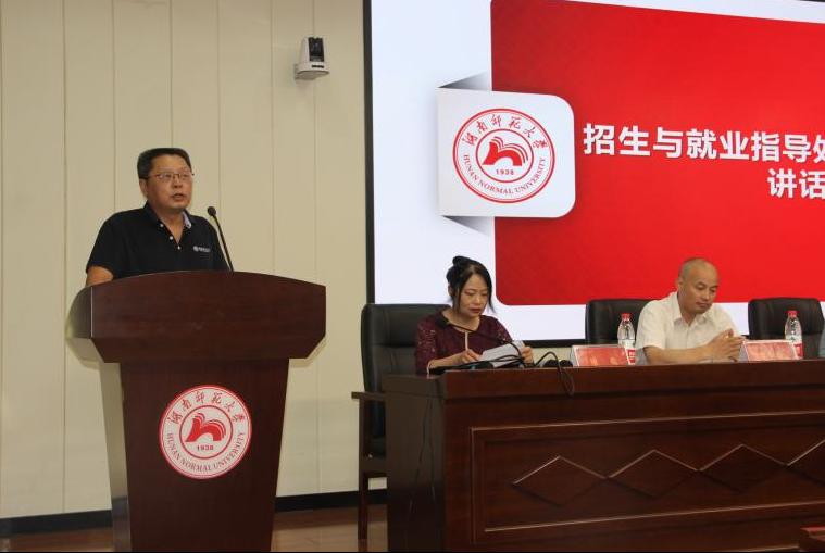 为引导毕业生树立正确就业观、择业观,找准职业定位,保持良好就业心态,9月16日下午,我院于在中和讲堂举办2023届本科毕业生就业动员会暨第一次线下招聘宣讲会,学校招生与就业指导处副处长周俊,学院院长王兆峰,学院副院长向智勇、贺小荣,学院副处级专职组织员骆劲华出席,各系系主任、教师代表、校友代表、2023届全体本科毕业生参与会议,会议由学院党委副书记廖欢主持。