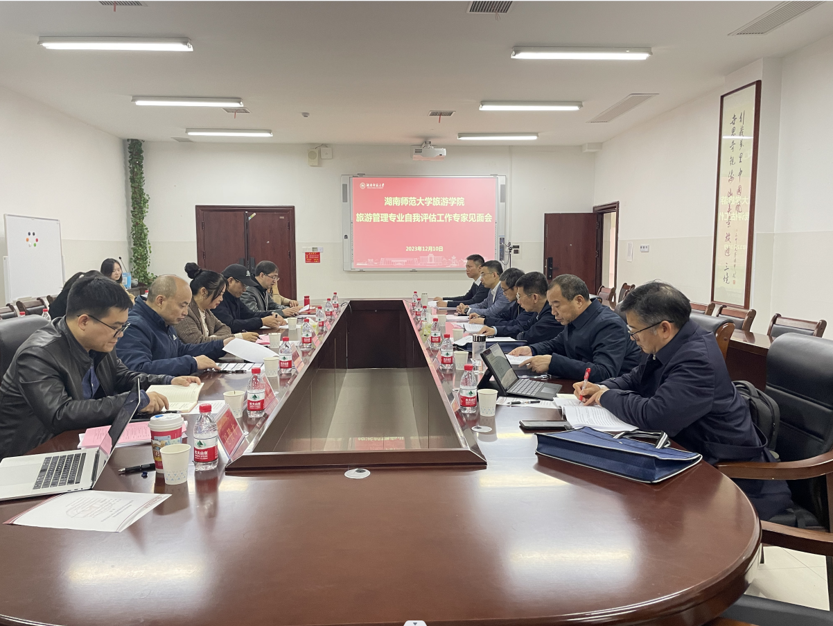 12月10日-11日,由暨南大学章牧教授为组长,贵州大学金颖若教授,中南财经政法大学邓爱民教授,东北财经大学史达教授,我校外国语学院陈敏哲教授,湖南旅游集团公司危湘衡经理组成的专家组对我院旅游管理专业开展专业自评现场考查评估。