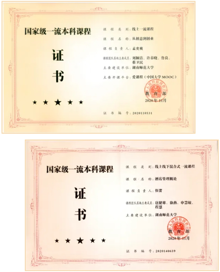 三是融合社会实践和创新创业理念赋能金课建设。会展经济与管理专业和旅游管理专业教师团队打造了国家级一流线上课程“从创意到创业”、国家级线上线下混合式一流课程“知识创业思维与方法”,省级社会实践一流课程“导游理论与实践”,培养学生创新创业思维意识和实践能力,为学生课程知识学习和技能培养提供重要保障,持续提升专业教学教育质量。