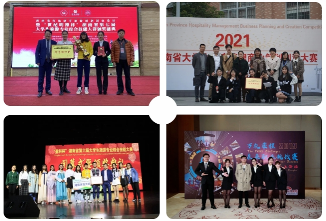 一是积极组织学生参加湖南省旅游教育学会教育专业委员会举办的重要学科竞赛“湖南省大学生旅游专业综合技能大赛”;二是牵头创办“湖南省大学生酒店管理商业策划创意大赛”,并被纳入湖南省教育厅学科竞赛赛事;三是高位承办2023年“湖南旅游集团杯”全国高校商业精英挑战赛会展专业创新创业实践竞赛(湖南赛区)。通过组织、创办和承办旅游管理类学科竞赛,有效搭建了产学研的学习平台,创新了课程教学的方式,拓展了专业知识的应用范围,提升了学生专业综合素养。