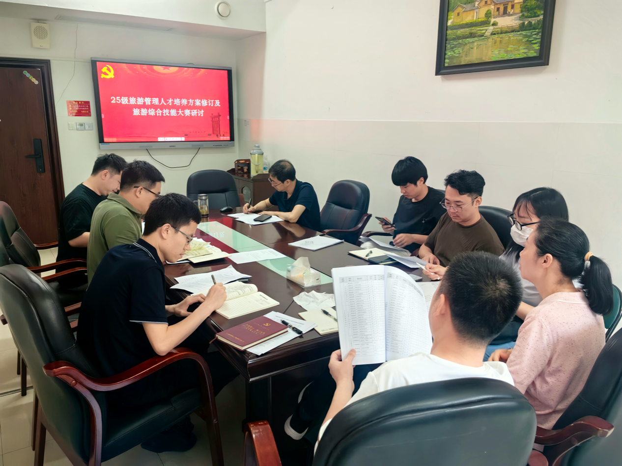 为了进一步优化人才培养方案和提升人才培养质量,5月21日下午,旅游管理系在235会议室召开2025级旅游管理人才培养方案修订研讨会,学院副院长贺小荣、郑群明出席,湖南新东方文旅公司人资主管何博宇以及系里相关教师共同参加会议。会议由系主任罗文斌主持。