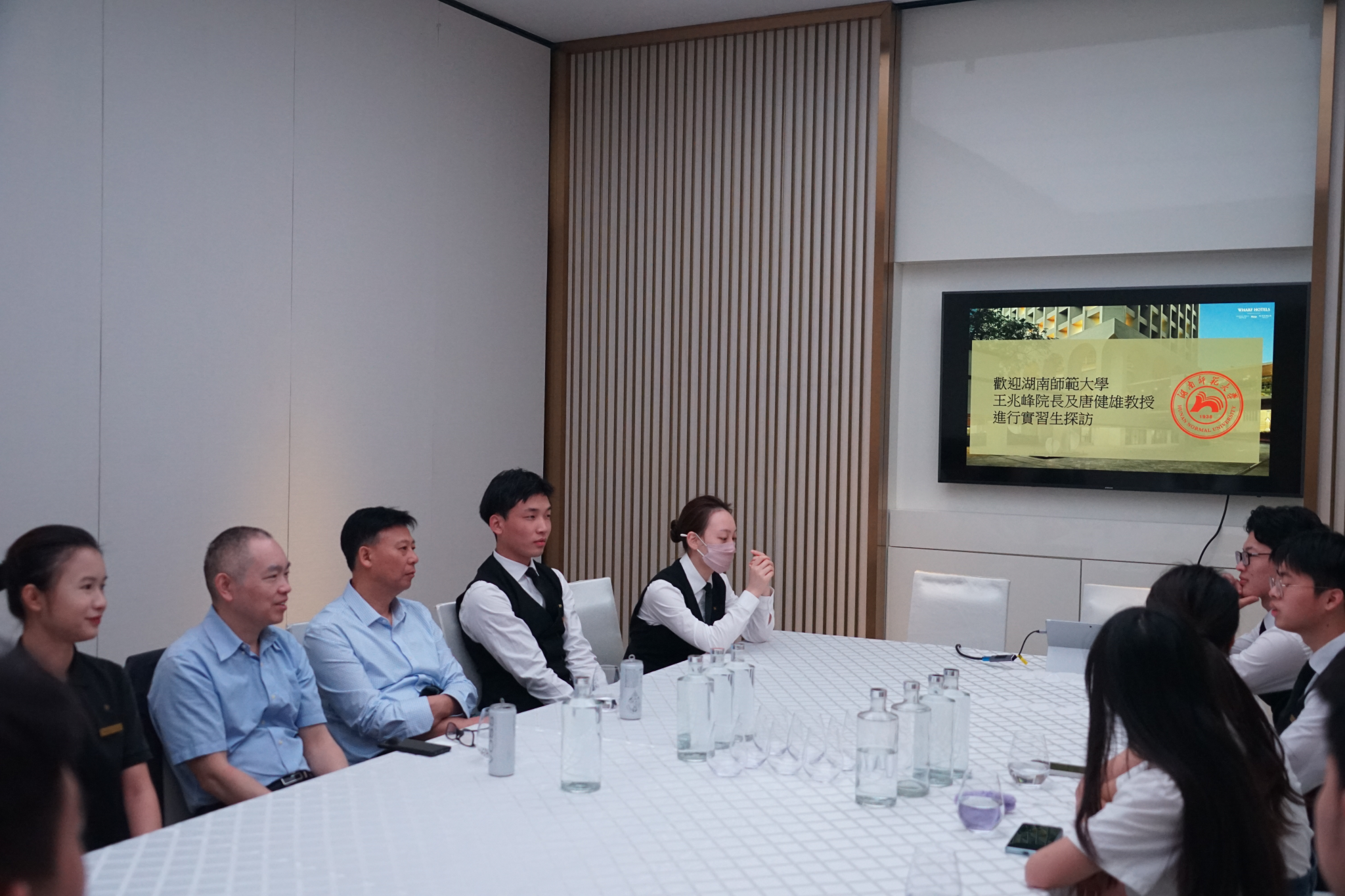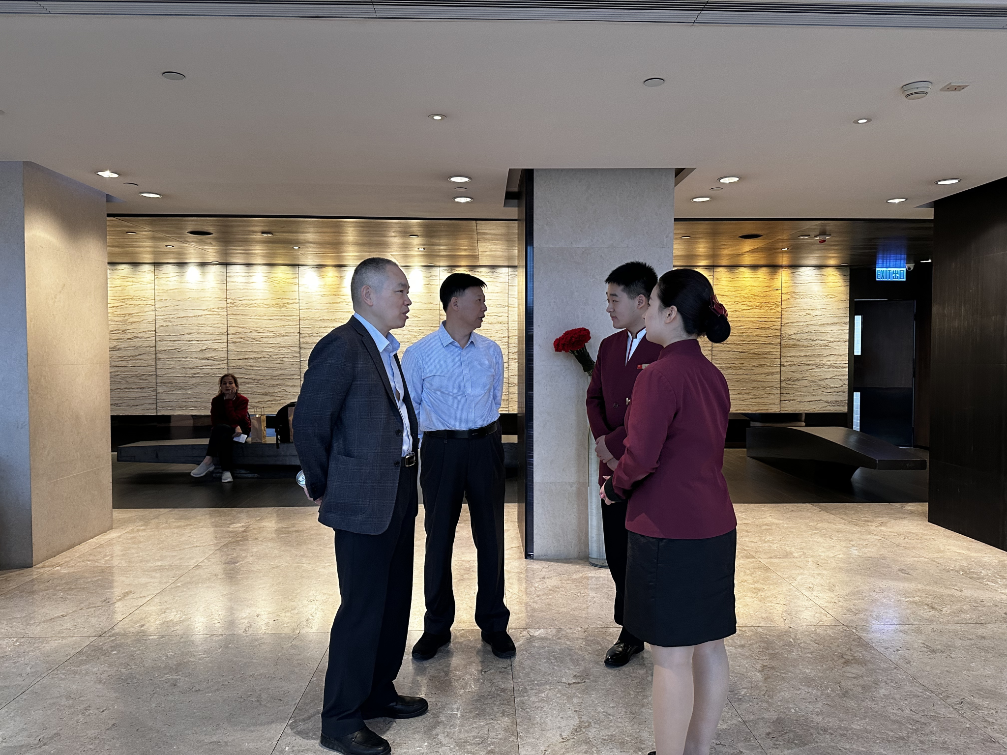 为全面掌握2022级酒店管理专业学生实习进展,强化产教融合机制,优化人才培养路径,4月14日-15日,我院院长王兆峰率队赴香港Marco Polo Hotels、Mandarin Oriental Hotel、The Murray等五家实习单位开展实习中期检查与校企合作调研。酒店管理系主任唐健雄随行,与酒店人力资源总监及经理、实习生展开深入交流。
