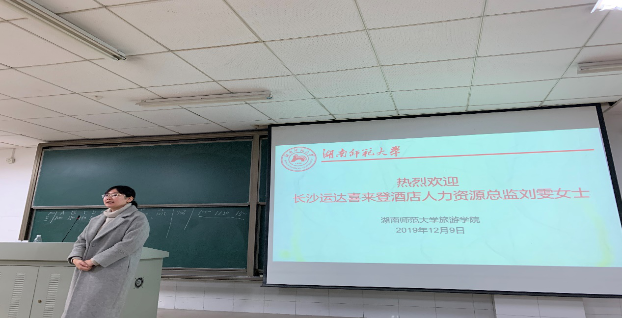 一方面,于12月5日上午和12月9日上午分别邀请了校外合作企业授课导师湖南省中青旅总裁助理刘伟先生和喜来登酒店人力资源总监刘雯女士来校讲课,分享旅游酒店行业人力资源管理工作的重点和难点、最新动态和发展趋势,帮助学生“足不出户也能知晓行业即时消息”。