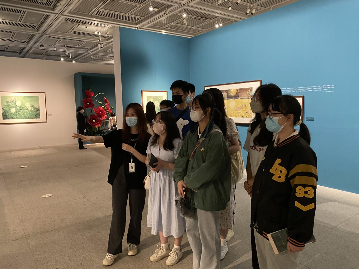参观环节由在省博物馆实习的两位会展经济与管理专业系2019级学生肖玉洁和彭湘琳引导和讲解。学生们重点参观了省博物馆的特色展——邹传安艺术与文献展“花魂鸟魄”。在一幅幅展品前,学生们驻足欣赏,感受邹传安画笔下的鸟语花香和画家创作的苦心孤诣。