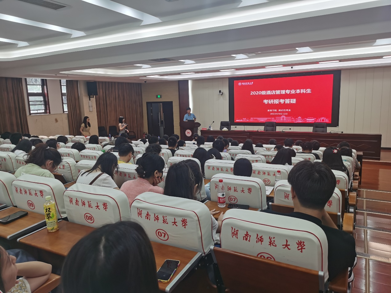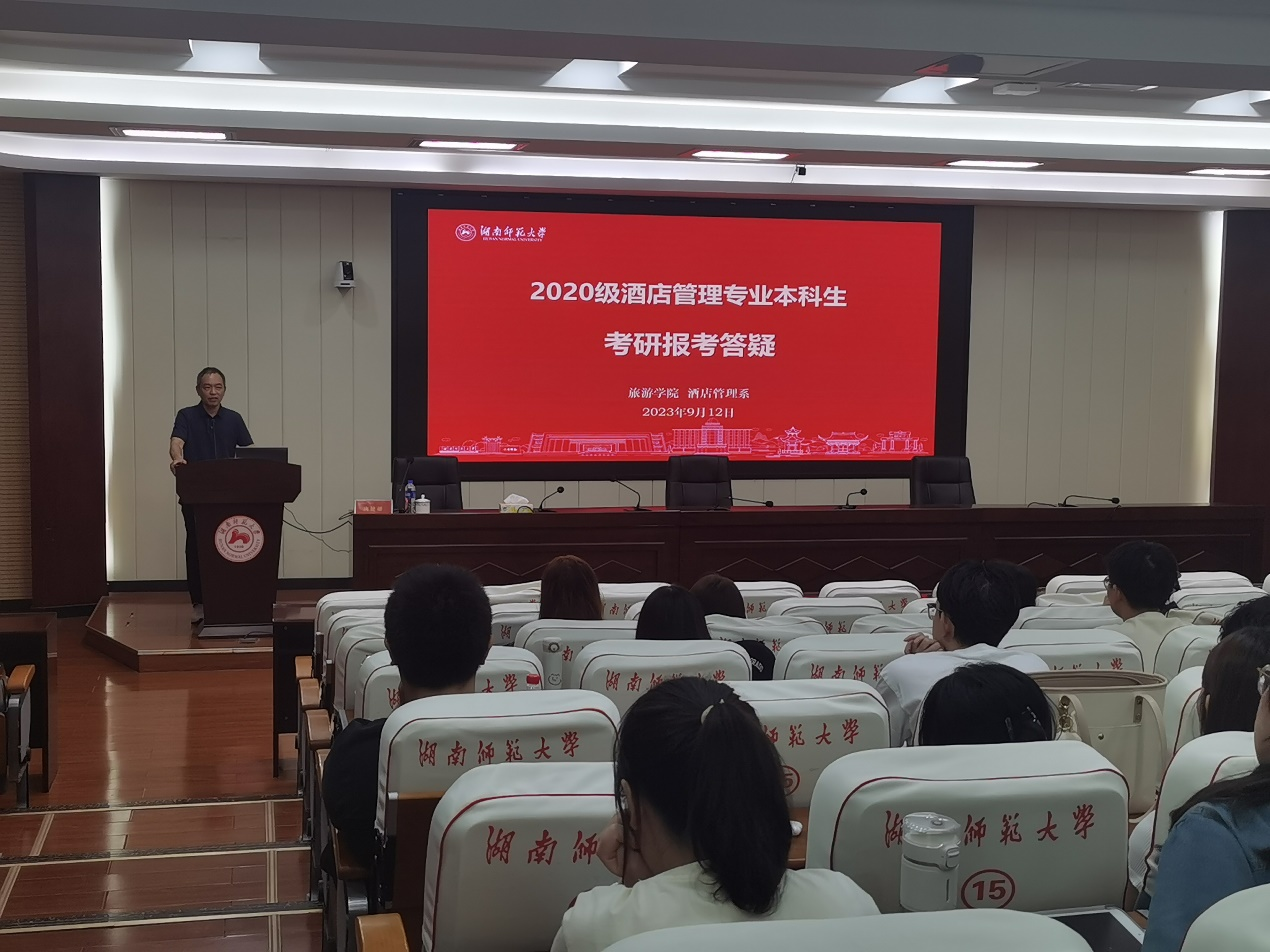 考研报名时间临近,为帮助我院2020级备战考研的同学了解报考流程和注意事项,明晰报考抉择,9月12日下午,酒店管理系在中和讲堂举行考研报考答疑会。学院院长王兆峰出席,酒店管理系主任唐健雄,2020级学生辅导员邱粤湘,2022级旅游管理专业硕士生文湘琦参加,会议由酒店管理系教师王晶主持。