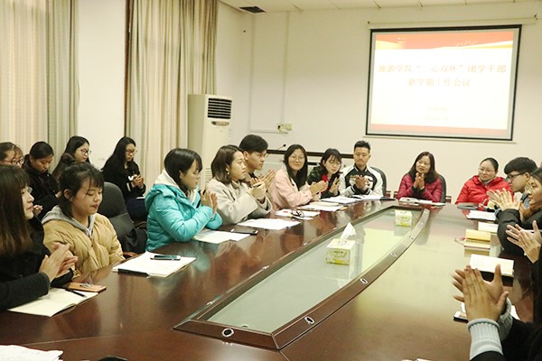 (通讯员 刘竹滢)3月7日上午,英国365集团公司于该院112会议室召开2018年新学期团学工作会议。英国365集团公司党委副书记廖欢、学工办主任谢胜文、团委书记龚曦、2017级辅导员邓丛亮出席会议。英国365集团公司“一心双环”全体委员参加会议。会议由2016级辅导员张悦主持。