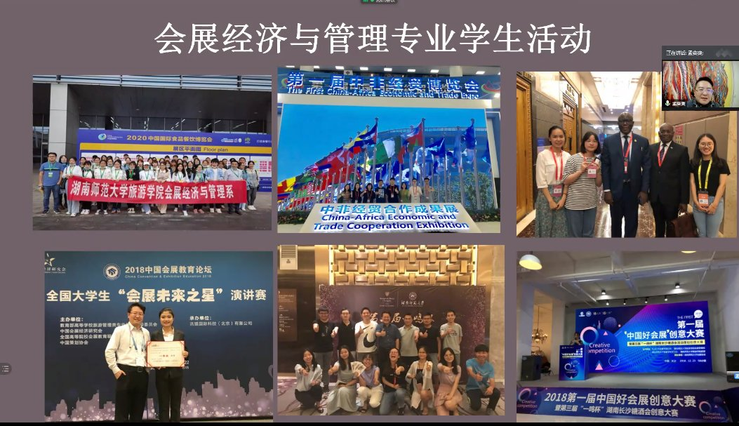 会议开始,张新洲介绍了会议的环节和主要内容。罗文斌首先进行内容分享,他介绍了旅游管理专业的创建历史和发展进程,重点强调了师资情况。汤静从“三个第一”着手讲述了旅游管理这个专业的专业优势,指出这个专业是符合社会发展需要的专业,旅游行业发展潜力巨大。她根据自己的经历劝解家长对孩子适度“放手”,不要过度干预孩子的决定,注重孩子的心理健康。王兆峰指出旅游行业是朝阳产业,就业前景好。他说“专业不是万能的”,强调学生要学习获取知识的能力。唐健雄从自己孩子的经历指出酒店管理专业的优点及未来职业的可选择面,举了优秀学生邓婵的例子说明兴趣和坚持的重要性。孟奕爽分享了学生们制作的有关会展的视频,让家长们对会展专业有了一定的了解。他重点分享了会展专业的学习内容,课本知识和社会实践相结合。刘颖洁讲述了酒店管理专业的“管培生计划”,与众多知名品牌有就业合作。培养锻炼学生的思维能力。朱张祥介绍了会展学生的实习单位,表达了会对学生认真负责的决心。