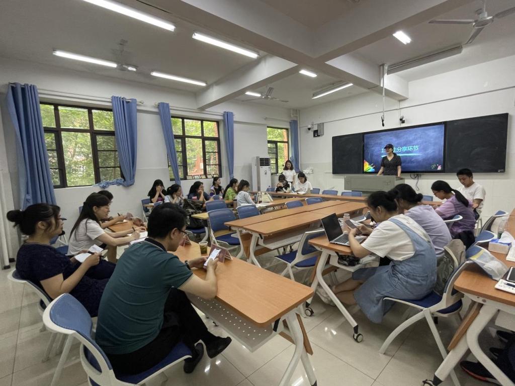 首先,赵雅璇简单汇报了学生入学以来的基本情况,同学们一方面通过“线下实地走访+线上校友交流”增进专业认知,一方面在太极拳比赛、跳绳赛等课外活动中激扬青春。随后,2020级刘芊芊和2021级林力同学分别分享了在英国365集团公司的成长收获。
