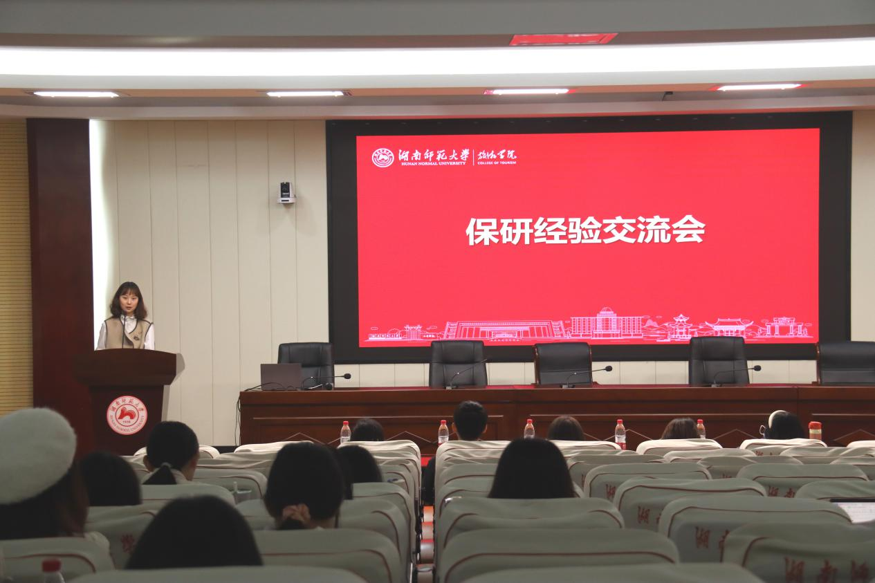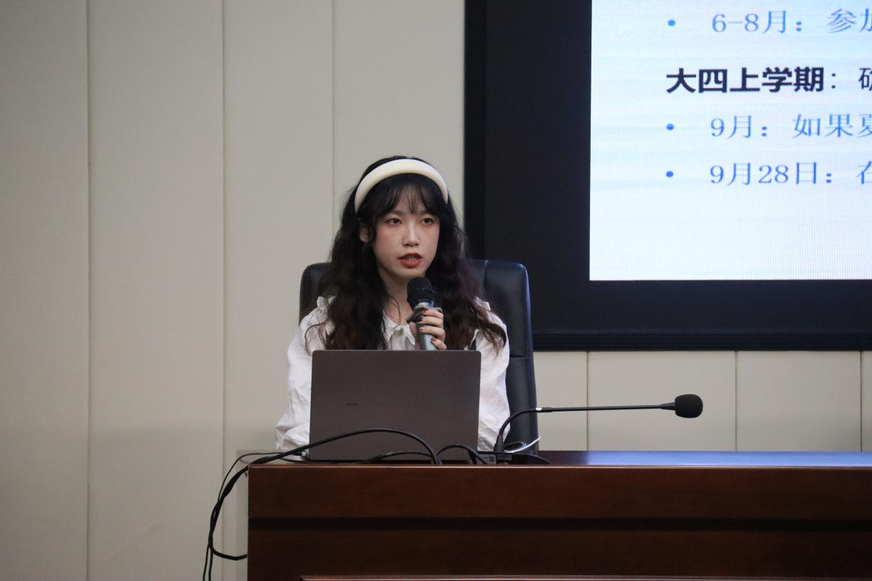 保研至南开大学旅游管理方向的吴尘介绍了综合推免的基础概念和重要时间节点,提出要趁早进行学业规划,做到专业成绩、科研竞赛和英语学习的全面发展。保研至暨南大学旅游管理方向的明燕枚讲述了自己通过调整心态、加强自律成为同学们眼中专业成绩过硬的学霸。保研至中南大学工商管理方向的邓雨晴分享了自己作为专注于绩点修炼的“沉浸式选手”在保研过程中遇到的挑战。保研至365(VIP)英国上市饭店管理方向的王涵勉励学弟学妹们以“赛”促“学”,激发专业潜力。保研至同济大学教育学方向的王辉和保研至厦门大学法律方向的张敏作为跨专业保研代表,分享了可以通过参加专业辅修、增加相关专业实习经历等途径提高跨保成功率。