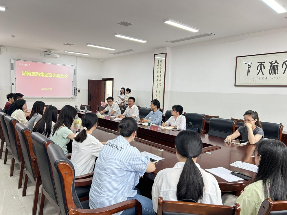 王兆峰代表学院对湖南旅游集团李域一行的到来表示热烈欢迎,并介绍了学院基本情况、学生就业进展。他表示,希望与湖南旅游集团继续保持深入合作,在实习基地平台建设、培训基地建设等项目上实现共建、共赢、共融。李域对湖南旅游集团的总体情况进行了详细介绍,并提出了集团“六类人才”需求及未来学生专业实习对接等方面的计划。座谈会结束后,湖南旅游集团人力资源部工作人员分为两组与毕业生进行面谈。