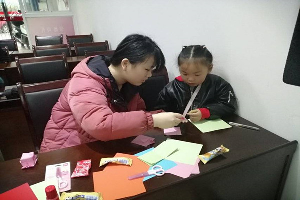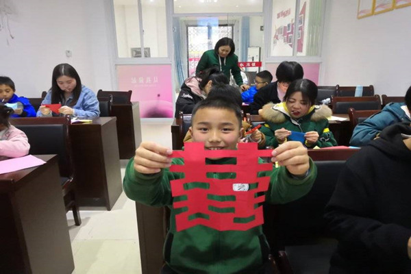 活动负责人带领干事到达天凤社区,召集社区老人、孩子,并对参与者进行分组,两人一组,分发剪刀和剪纸、风车折纸和杆子。小朋友和干事共同折好风车,在风车上写上自己的心里话,画上小图案。其他参与者根据窗花模板剪出自己想要的样子,并进行创意、精美的展示与评选。参与者与干事在手工、剪纸等活动中和传统对话,领悟传统之美。
