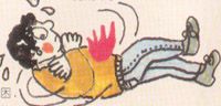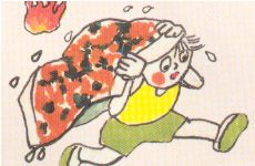 9、如果身上着火,千万不要奔跑,要就地打滚,压灭身上火苗。