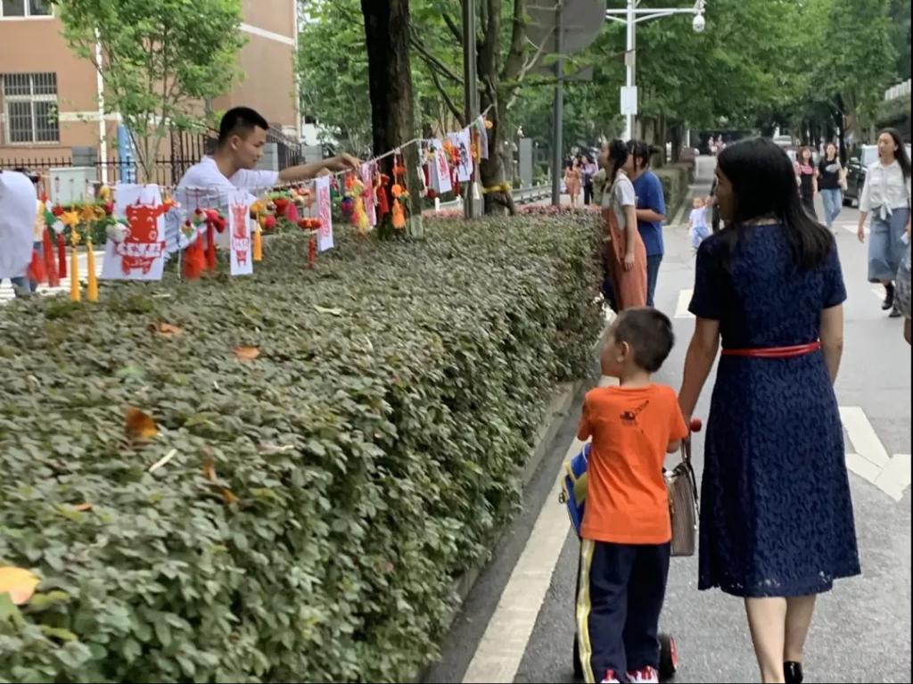 实践部的干事们预先收集好同学们的优秀作品,并于当天在木兰路张贴海报、悬挂展品,供大家观赏。观展人员包括本科生、研究生、各位老师以及对中国传统手工艺十分感兴趣的外国友人。社会实践部的同学们与他们热情交流,并赠与他们饱含中国传统文化气息的平安结留作纪念。