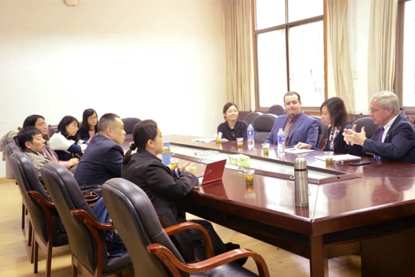 (通讯员刘芯蕊)10月17日上午,万豪基金会万礼豪程项目团队来到我院进行拜访交流并于院116会议室举办了专业座谈会。万豪基金会万礼豪程项目总监董佳、首席资深学术顾问杜靖德教授(Gene Lamke)、爱荷华州立大学酒店管理专业副教授白睿恒(Eric Brown)和项目助理吴臻珍受邀参加此次座谈会。我院院长王兆峰、党委书记李正益、酒店管理系主任唐健雄教授以及部分酒店管理专业教师出席此次教学座谈会。