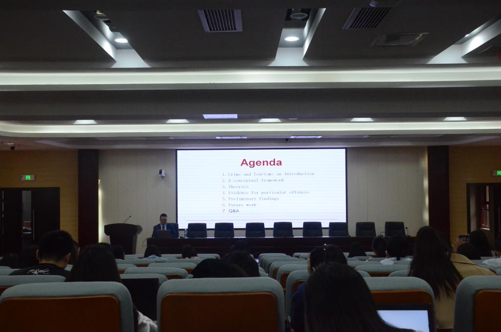黎永强教授主要从犯罪与旅游简介、犯罪与旅游概念性框架、实证分析、初步研究发展和未来研究方向五个方面为我们讲授了游客旅游与犯罪的的基本内涵与相关联系。他通过案例的方式分别从游客作为受害者和犯罪者两个角度对该主题进行分析和解读。他指出:跨国界旅游对国际司法也会产生影响,目前对于游客旅游的研究还未侧重于旅游造成的犯罪对政治的影响上。他认为,犯罪与旅游问题是目前世界上的前沿问题,收集数据是一项艰难的工作,要想获得有价值的数据,首先要做好样本框架,从不同监督分析样本所具有的特征。