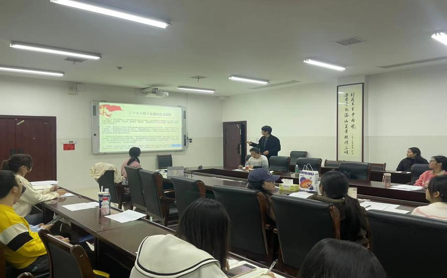 为深入学习贯彻党的二十大精神,3月10日晚上,研究生第二党支部于中和楼233会议室开展了《研究生如何助力国家现代化战略》主题党课学习,主讲人为研究生第二支部“第一书记”应志为,学院党委专职组织员骆劲华到会指导。