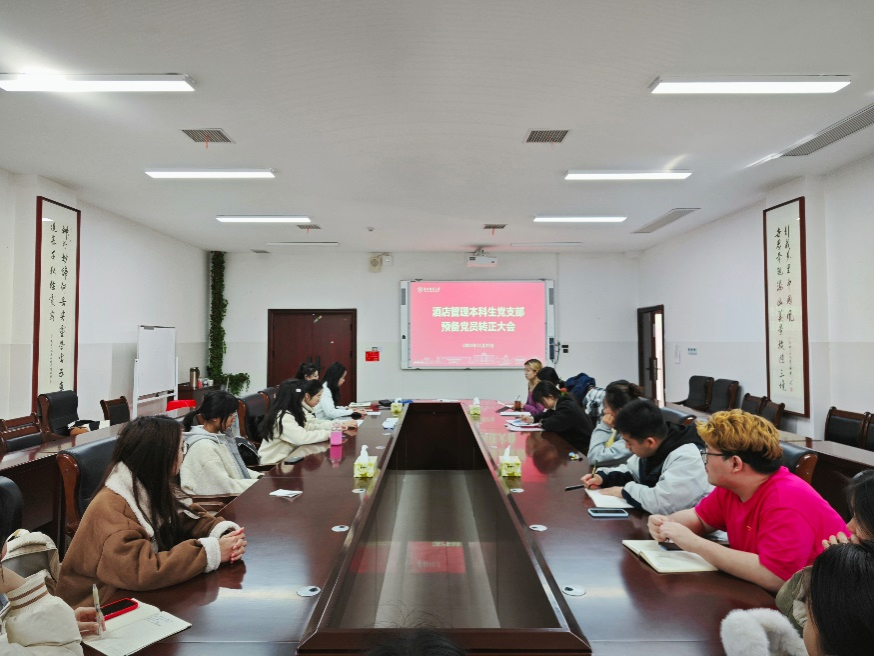 11月27日下午,酒店管理专业本科生党支部在中和楼233会议室召开预备党员转正大会暨微党课学习活动。会议由支部副书记马游游主持。