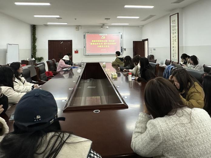 2月26日下午,研究生第一党支部在中和楼233会议室开展“聚焦组织生活 提升党性修养”主题党日活动。活动由支部书记李欣悦主持。