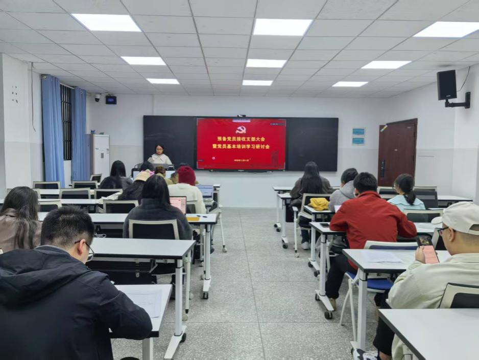 11月11日,研究生第二党支部于中和楼118教室召开预备党员接收大会暨主题党日活动,支部书记胡艳主持会议,支部“第一书记”刘为潍老师到会指导。本次会议应到正式党员20名,预备党员1名,实到正式党员20名,预备党员1名。