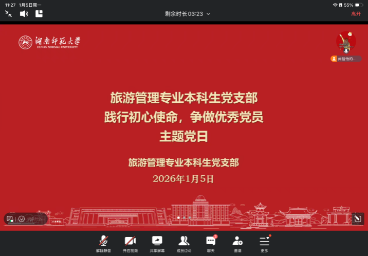 1月5日,旅游管理专业本科生党支部开展1月份主题党日活动,活动由支部副书记尚佳怡主持。
