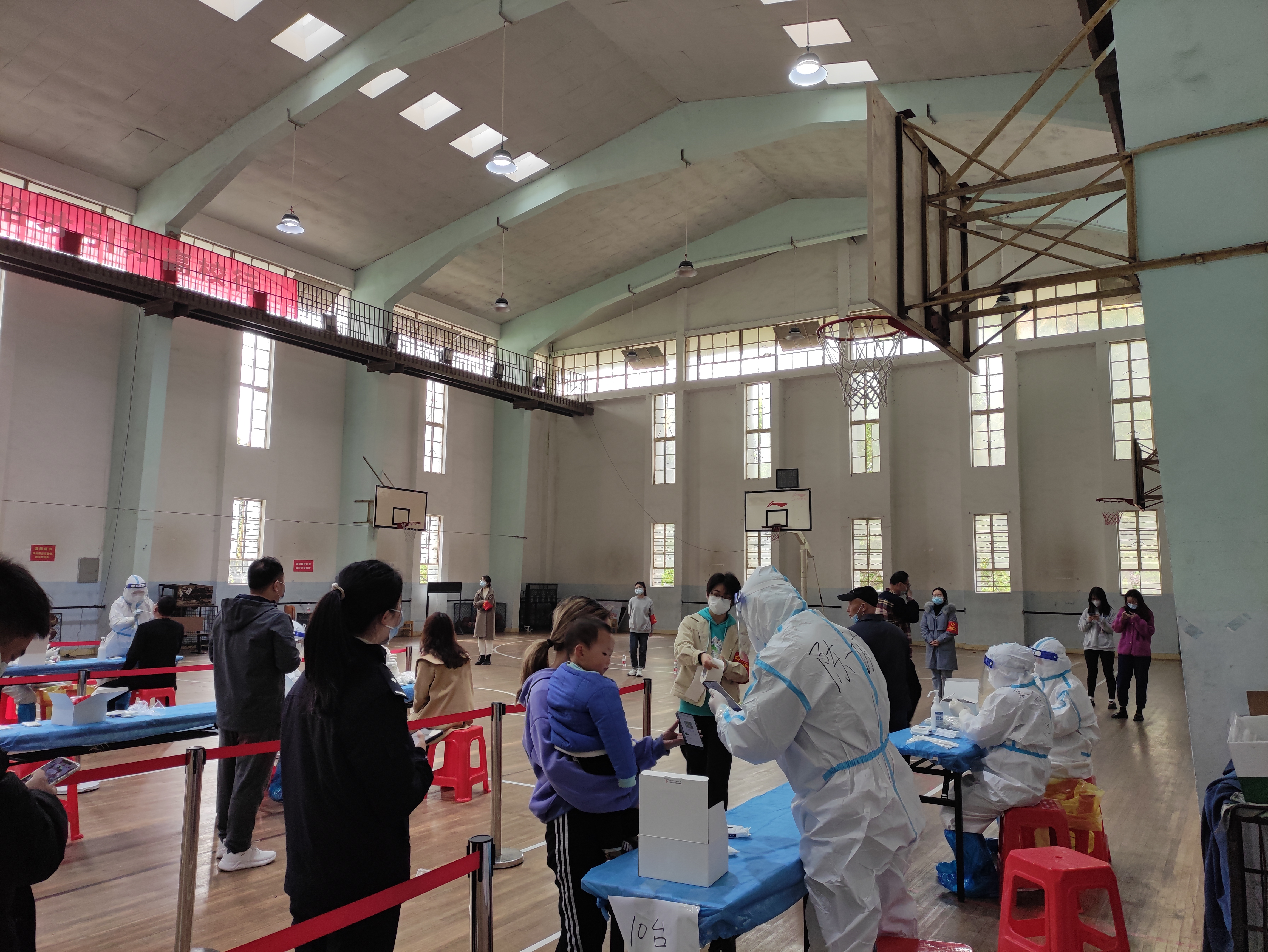 维护核酸检测现场秩序,配合医护人员开展工作。学校于4月2日上午开展第八轮全员核酸检测,党员同志们于早上8点在二里半校区体育馆门口集合,经过岗前培训、佩戴红袖章以及工作分工等程序之后,依次前往核酸检测执勤岗。从早上8点到下午1点,党员志愿者坚守岗位,引导学生整齐有序扫码进场、维护核酸检测的现场秩序、听从医护人员的指挥并及时给予不会使用智能手机或腿脚不便的老人家帮助,保证了核酸检测安全顺利进行。