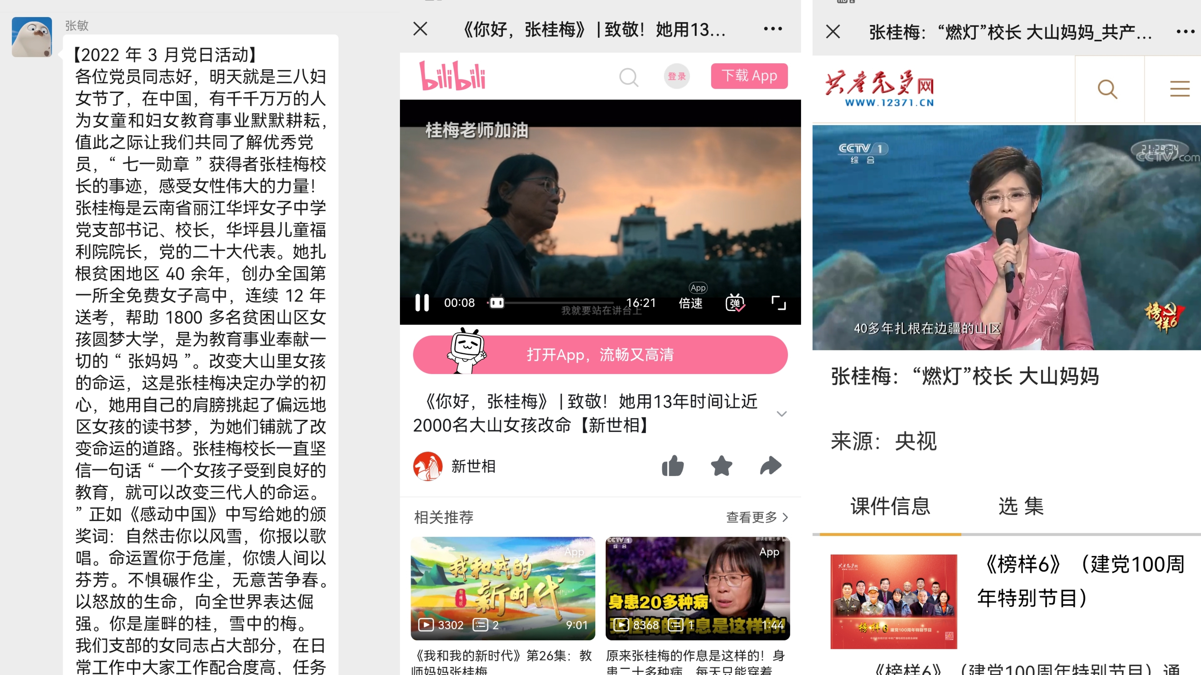 恰逢三八妇女节,祝愿每一位女性党员同志能在自己的人生中活得精彩,像张桂梅校长一般坚持自己的理想,回馈社会,奉献社会。