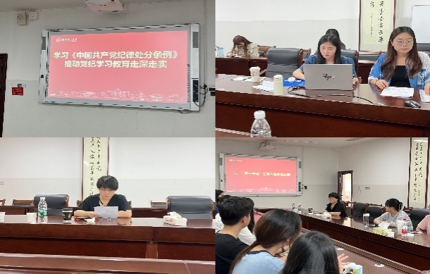 5月15日,研究生第三支部在中和楼233会议室举办“学纪律 筑防线”主题党日活动。会议由支部书记史雅潼主持,“第一书记”王晶和支部党员参会。