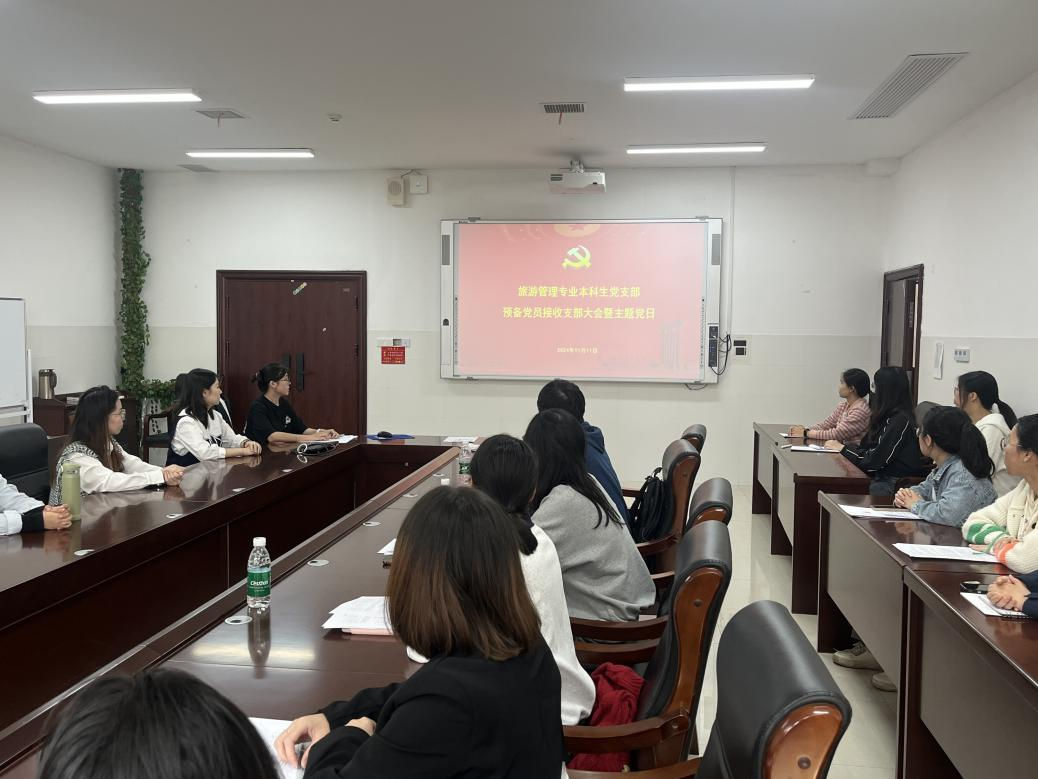 11月11日,旅游管理专业本科生党支部于中和楼233会议室召开预备党员接收大会暨主题党日活动,本次大会由支部副书记王钰熹主持。