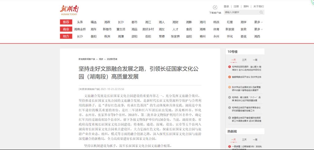 近日,新湖南网站刊登了我院王兆峰教授等人发表的文章《坚持走好文旅融合发展之路,引领长征国家文化公园(湖南段)高质量发展》,全文如下: