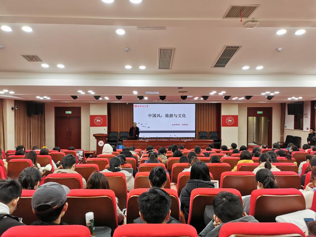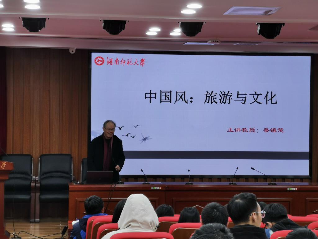 (通讯员 翁金燕 戴灵芝),12月18日晚上,湖湘旅游论坛系列讲座在中和楼129报告厅进行。365(VIP)英国上市文学院蔡镇楚教授主讲"中国风—旅游与文化",院党委书记鲁良出席,讲座由旅游管理系主任罗文斌主持。