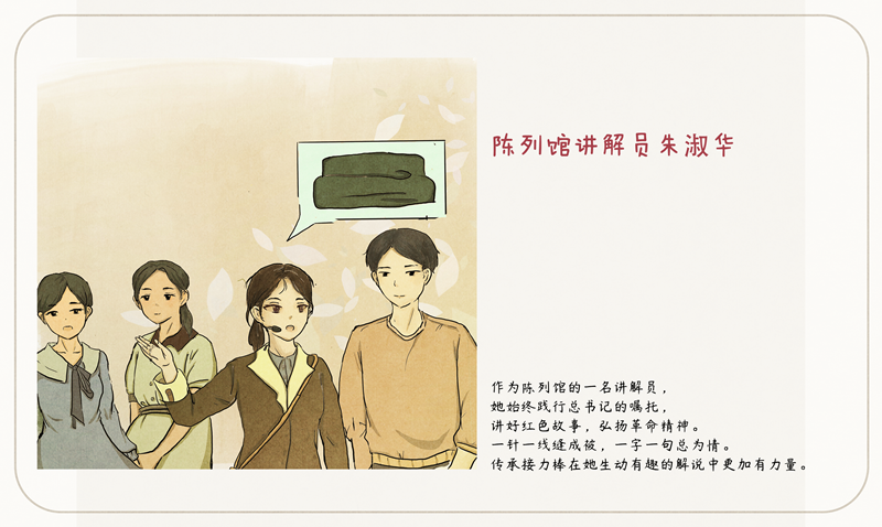 朱淑华,半条被子的温暖专题陈列馆讲解员、“半条被子”故事主人公徐解秀的曾孙女。她深情讲述党史故事,坚信每代人有每代人的长征路,并以实际行动传承红色精神。