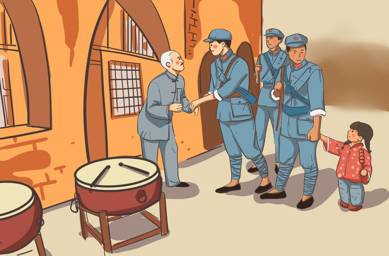 不久,接到组织安排的任务,红军战士们整理着装、备好战马和粮草,准备离开了。在这几日的相处中,他们与老百姓们结下了深厚的友谊。离别时,他们将先前准备的物资与百姓们进行交换,看着这支“不拿百姓一针一线,为人民做主”的队伍,百姓们握着红军战士的手,迟迟不肯放下。