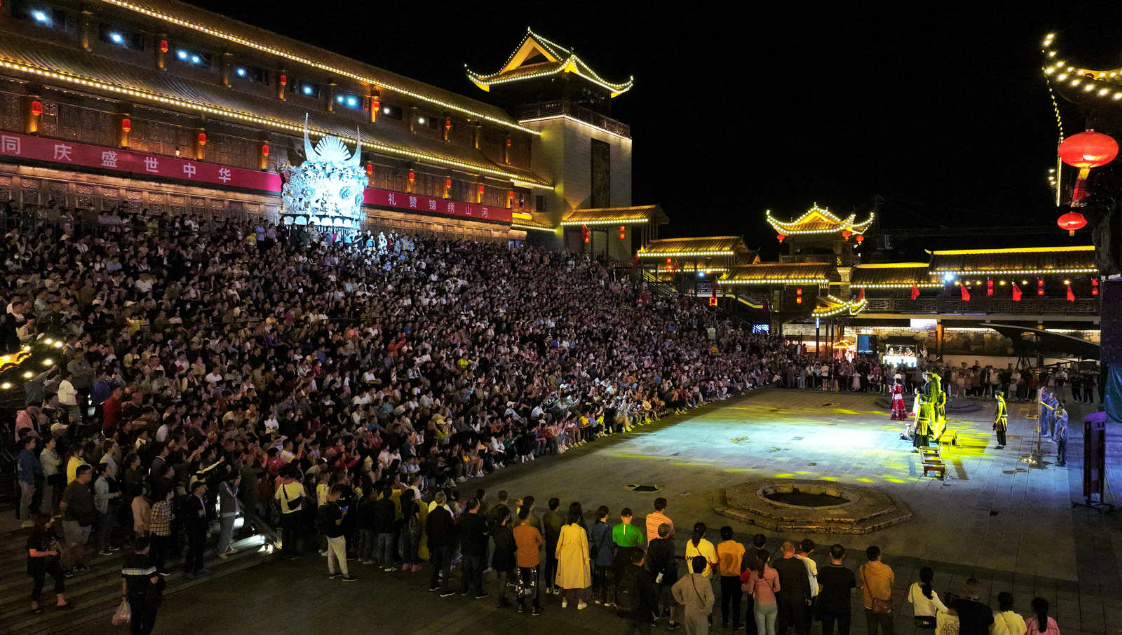 国庆假期,张家界《魅力湘西》火爆上演。(吴勇兵/摄)