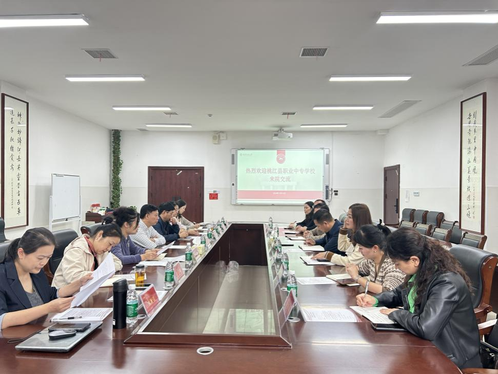 10月16日上午,桃江县职业中专学校党委书记、校长周育班一行来院调研交流。我院院长王兆峰,副院长向智勇,副处级专职组织员骆劲华出席座谈会,酒店管理系副主任伍蕾,酒店管理系副教授刘颖洁参加座谈会,交流会由我院党委副书记廖欢主持。