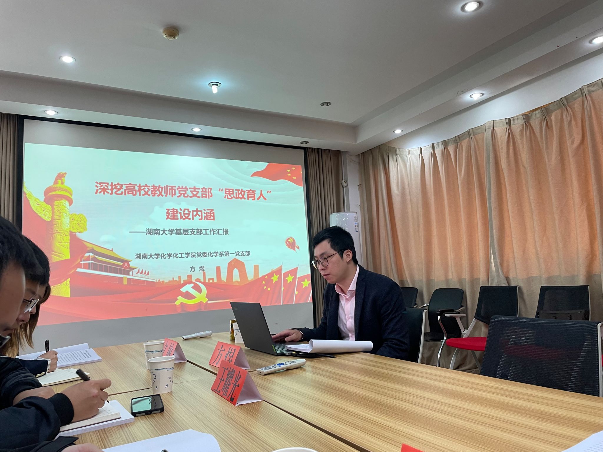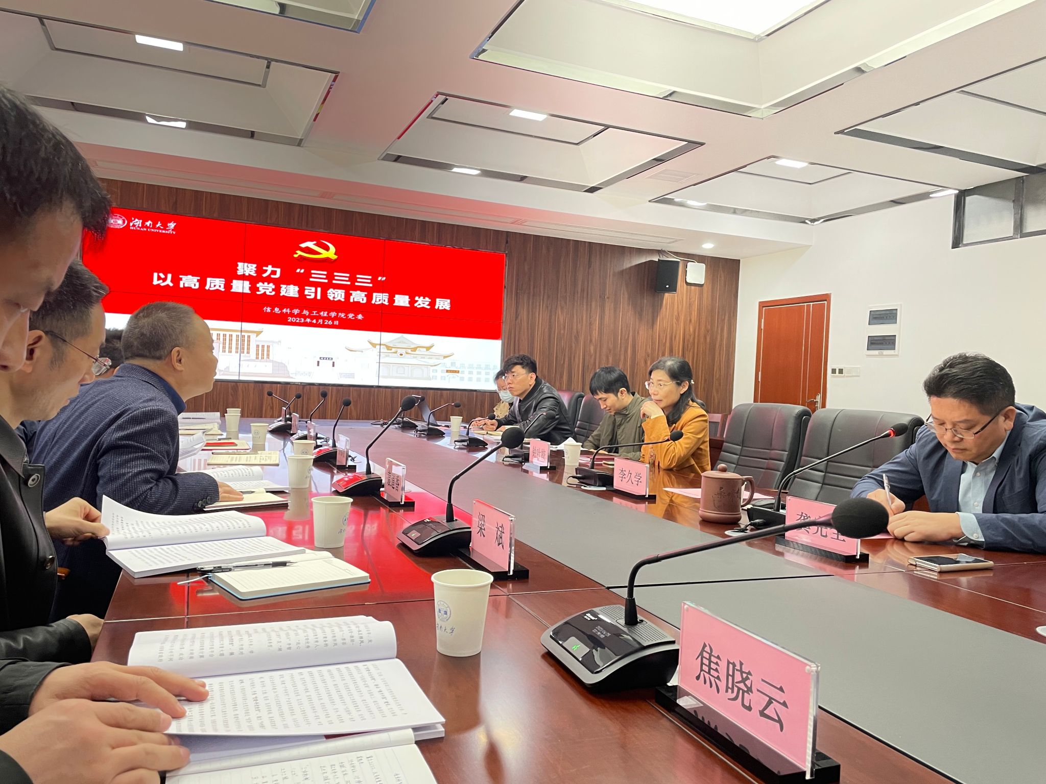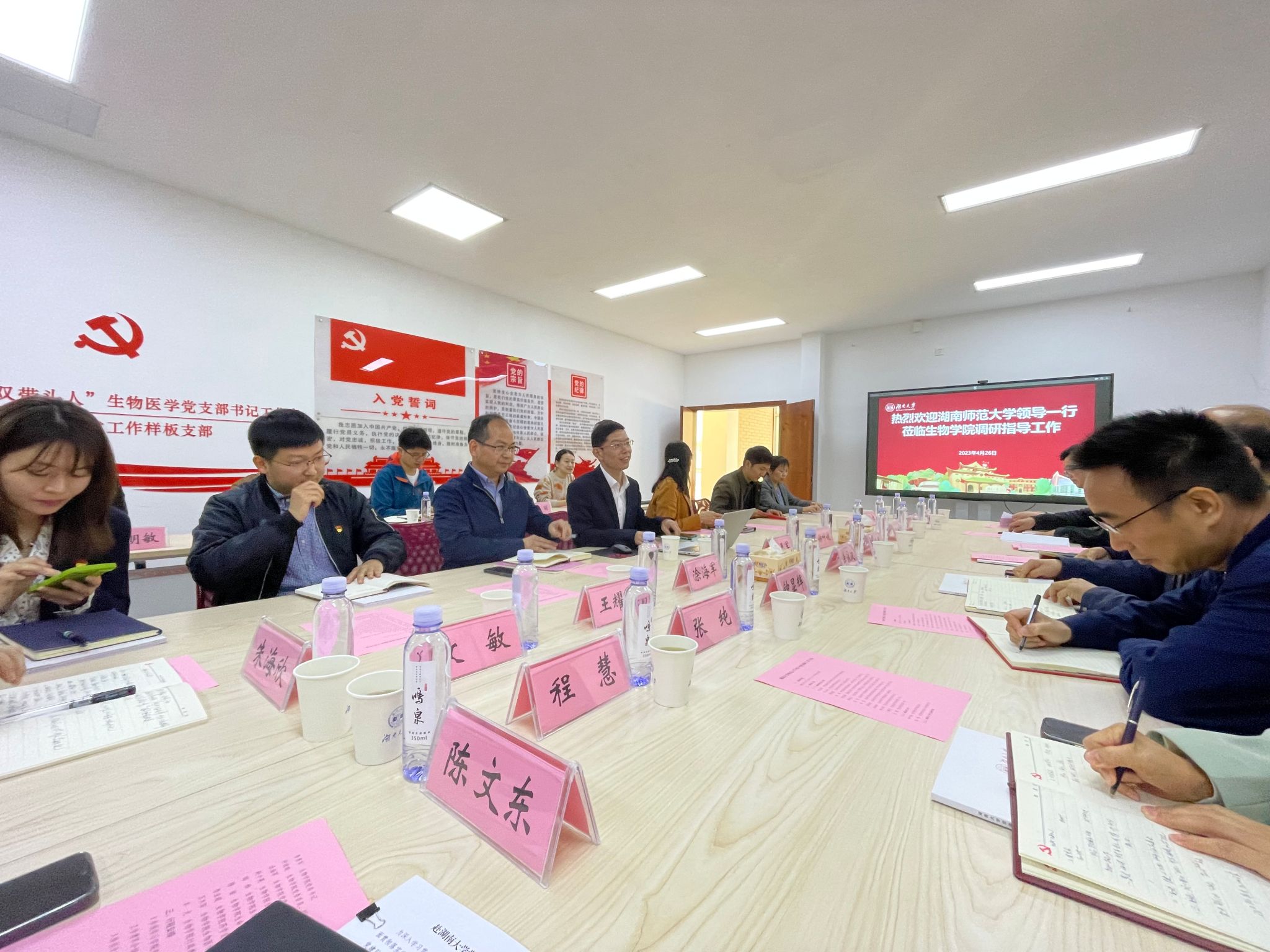 调研团先后走访了湖南大学的三个学院,其中重点调研两个全国党建工作标杆院系:化学化工学院党委、信息科学与工程学院党委;以及两个全国党建工作样板支部&全国高校“双带头人”教师党支部书记工作室:生物学院党委生物医学教师党支部、化学化工学院党委化学系第一党支部。重点了解了湖南大学“基层党建活力提示”计划项目中的基层党建品牌项目、党员教育特色项目等。