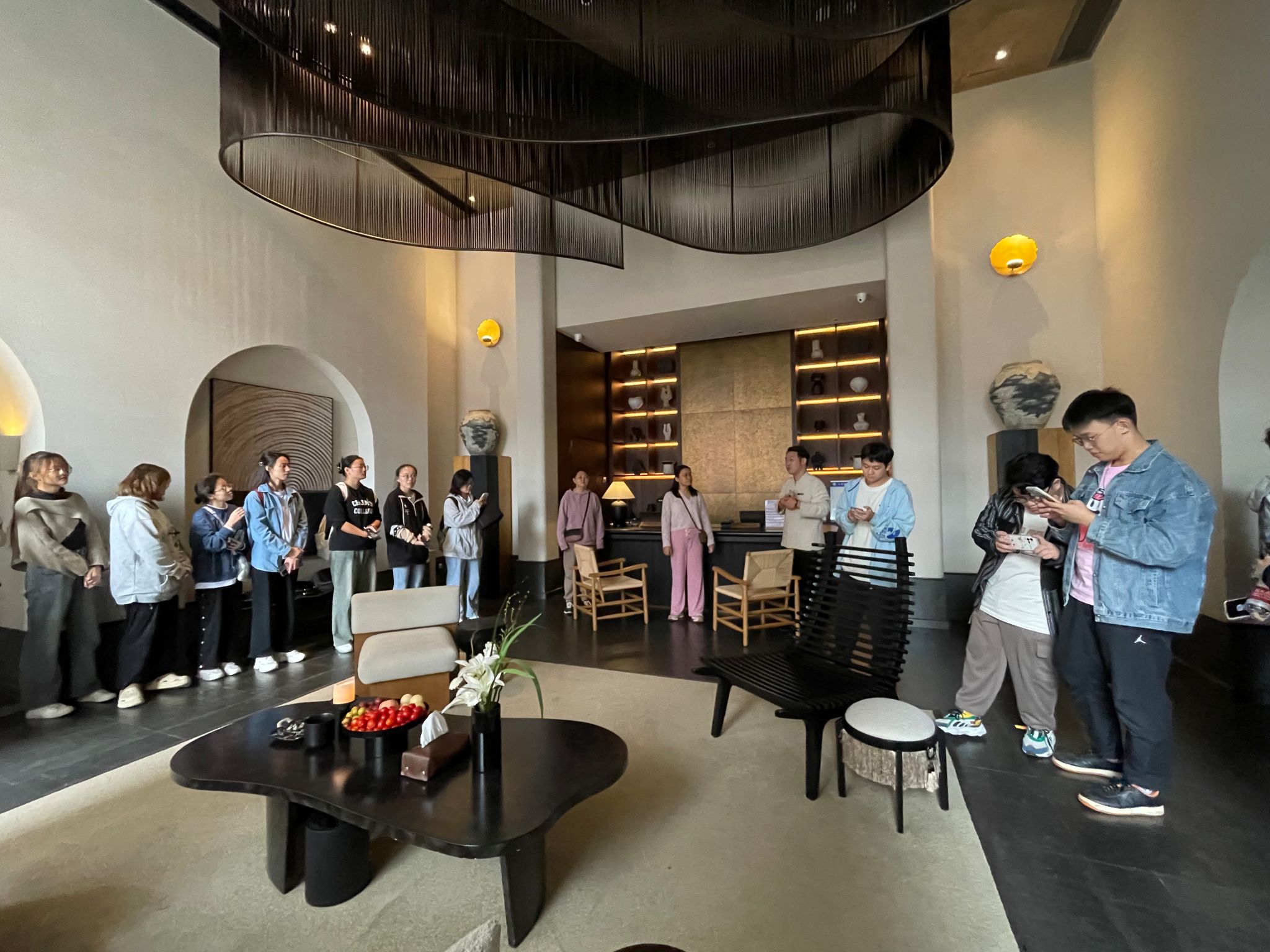 本次调研活动中,三十余名师生分为两组,在酒店经理的引导下分别对两家酒店进行参观,了解酒店的发展历史、设计理念与经营模式,感受酒店中的整体环境与服务态度。参观过后,老师和同学们同两位酒店经理分别进行了采访与座谈,聆听两位经理人的职场经历与对酒管生的职业规划建议。