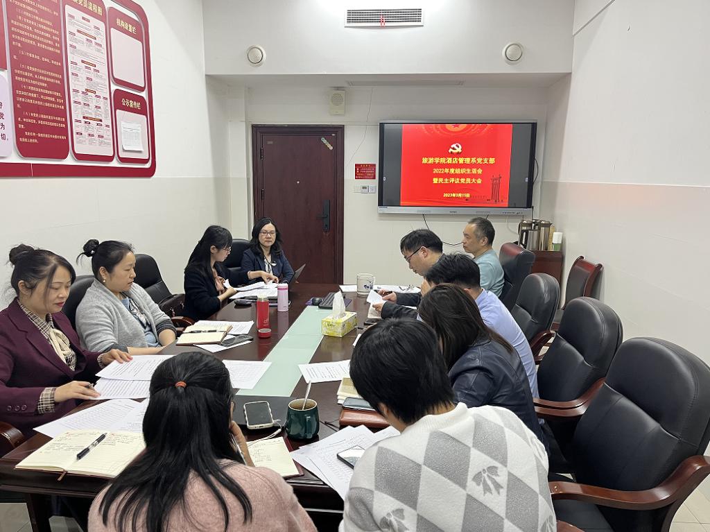 会议共包括四项议程:议程一,党支部书记唐健雄同志对2022年度的党支部工作做了详细述职报告,对支部工作存在的不足进行了深刻剖析,并提出2023年支部工作的重点方向。议程二,支部党员逐一开展了自我总结和批评,再由其他同志给出了诚恳的批评意见和建议,经过一番深刻的批评与自我批评,各位党员同志清醒认识到自身存在的问题和不足,并表示在今后的生活和工作中将进行认真的落实整改。议程三,支部全体党员进行了民主测评,最终本支部唐健雄、伍蕾、程慧、邓逸伦等四位同志评议结果为“优秀”,其他党员同志评议结果均“合格”。议程四,学院领导对支部工作进行了认真的点评,一方面是高度肯定了酒店管理系党支部的工作成效,另一方面则从加强理论学习、推进师风建设、加强党建与业务融合等三方面给出了具体的指导和建议。