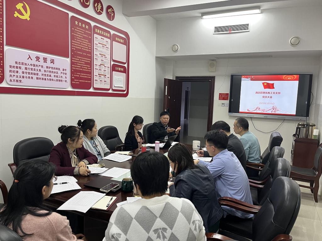 3月15日晚上,酒店管理系党支部在中和楼235会议室召开2022年度组织生活会暨民主评议党员会议,学院院长王兆峰,学院党委副书记廖欢,学院党委专职组织员骆劲华出席,会议由支部副书记程慧主持,支部全体党员参加了会议。