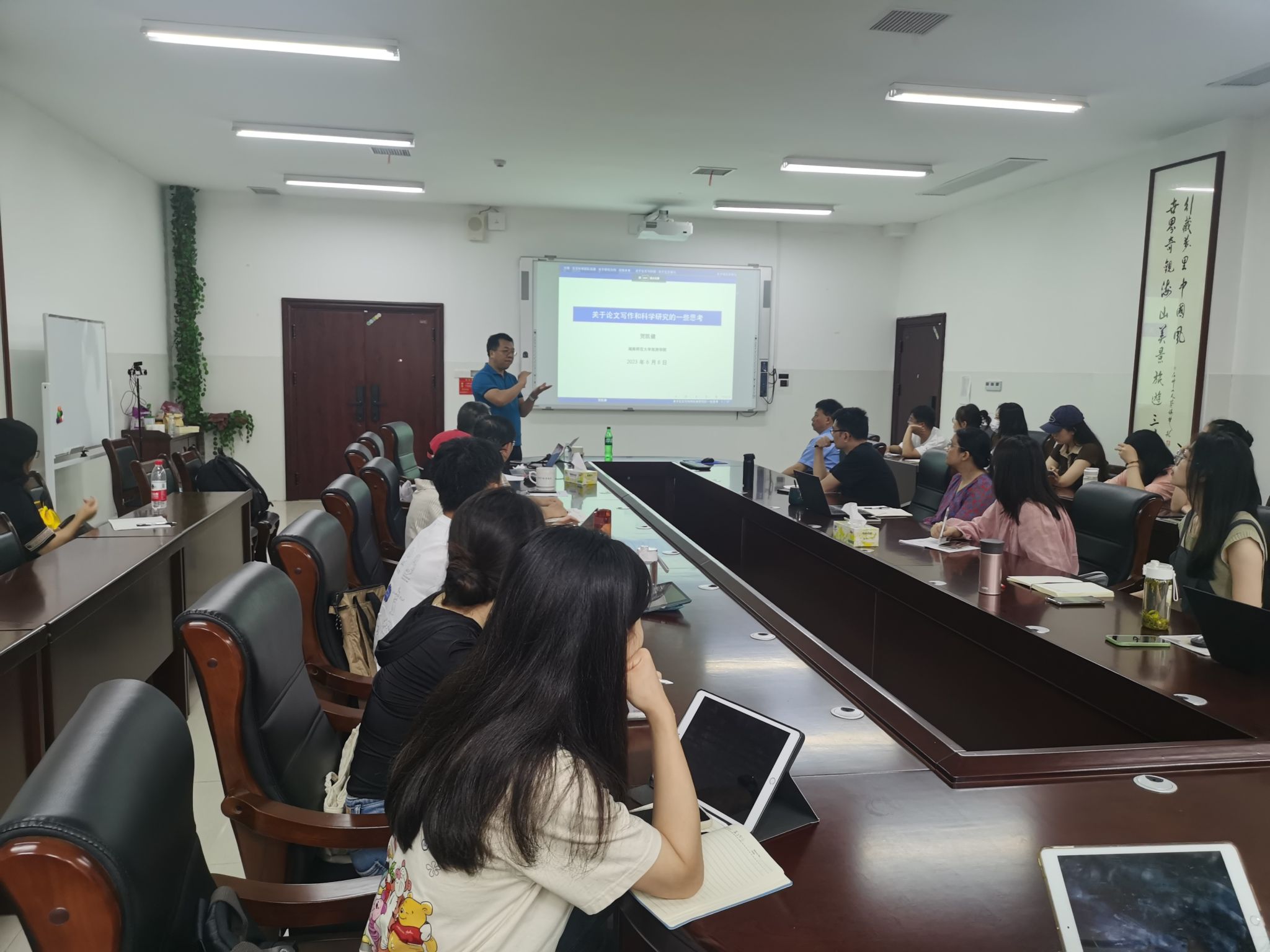 酒店管理系贺凯健教授、王晶副教授分别以《关于论文写作和科学研究的一些思考》、《英文文献阅读与写作》为题做了精彩报告。贺凯健教授结合自身的科研经历,介绍了如何应用AI技术与大数据应用撰写相关学术论文;王晶副教授分享了英文文献阅读、写作、投稿、修改与发表的过程与经验。在分享之后师生们进行了交流互动,对如何撰写和发表高质量学术论文进行了深入研讨。